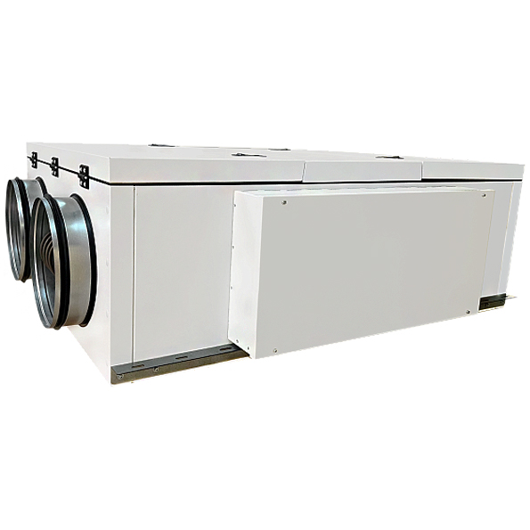 Приточно-вытяжные вентиляционные установки Energolux Riviera-GO R-EC СRW 700 оснащены энергоэффективным EC-двигателем, встроенной системой автоматики, опциональным водяным нагревателем и эффективным роторным регенератором подвесного типа, работающим с КПД до 91%. Они имеют уникальную систему управления: вместо ременной передачи в роторном регенераторе применён зубчатый привод, что позволяет избегать обрыва или растяжения ремня. Управление вращением осуществляется шаговым двигателем по специальному алгоритму контроллера. Новейшая система уплотнения роторного регенератора практически полностью исключает возможность подмеса вытяжного воздуха к приточному. Вентустановки Energolux Riviera-GO R-EC СRW 700 обладают корпусом с порошковой покраской и тепло-звукоизоляцией 5 см из базальтовой минеральной ваты. Отличаются компактными размерами и лёгким обслуживанием. Функционируют с низким уровнем шума. Фильтрация приточного воздушного потока осуществляется посредством воздушных фильтров со степенью очистки EU5 / EU5. Благодаря использованию современных EC-двигателей и высокоэффективных роторных регенераторов, существенно сокращён расход энергоресурсов. Для удобства взаимодействия с вентиляционными установками предусмотрен пульт дистанционного управления с ЖК-дисплеем Touch Screen. Аксессуары: